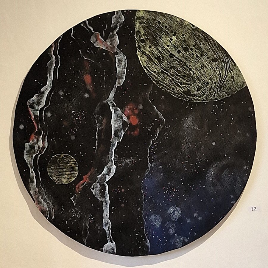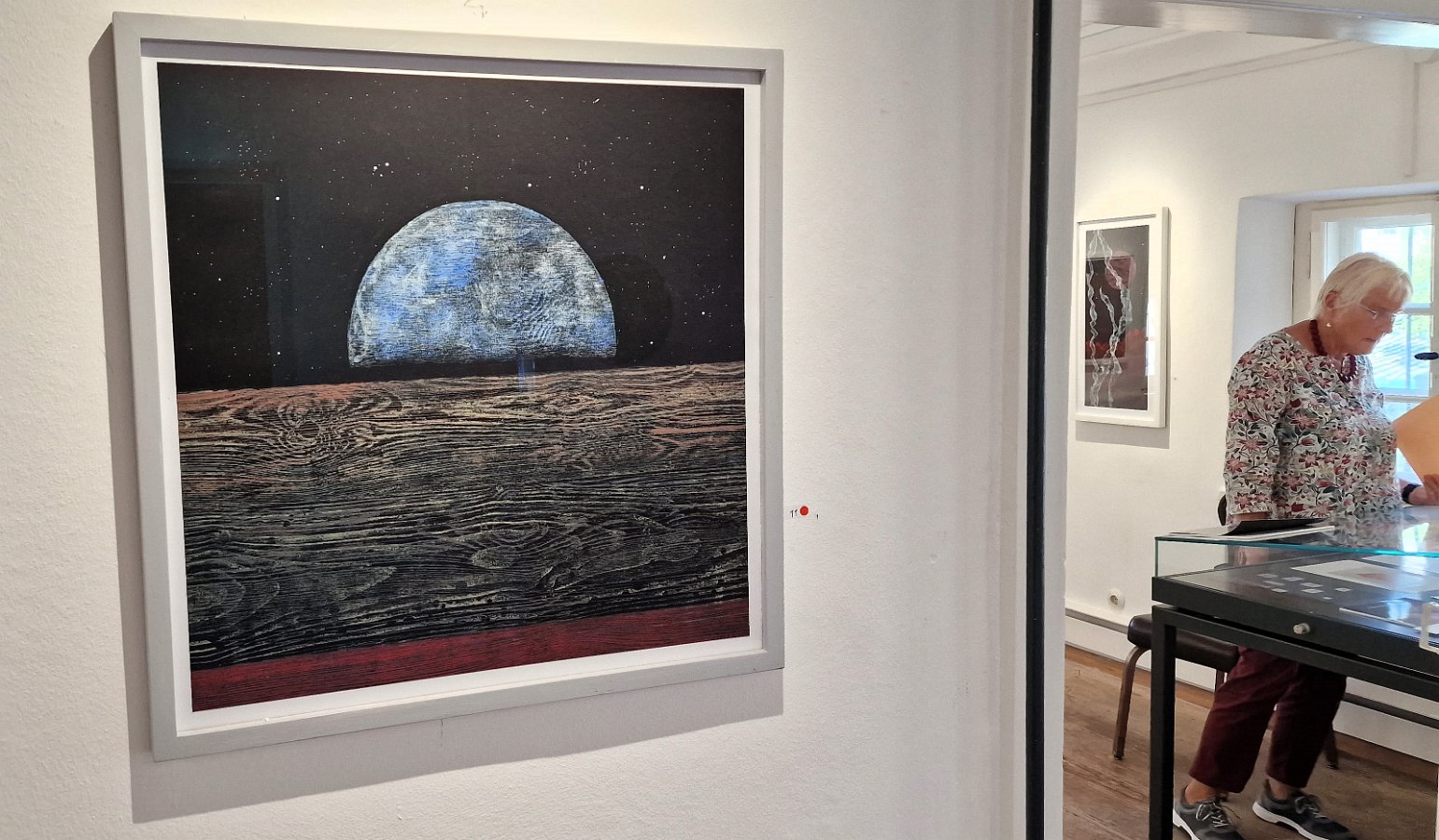 Ludwig Gruber, Blick durchs Teleskop II, Farbholzdruck, Pigmente, Tuschstift, 2023