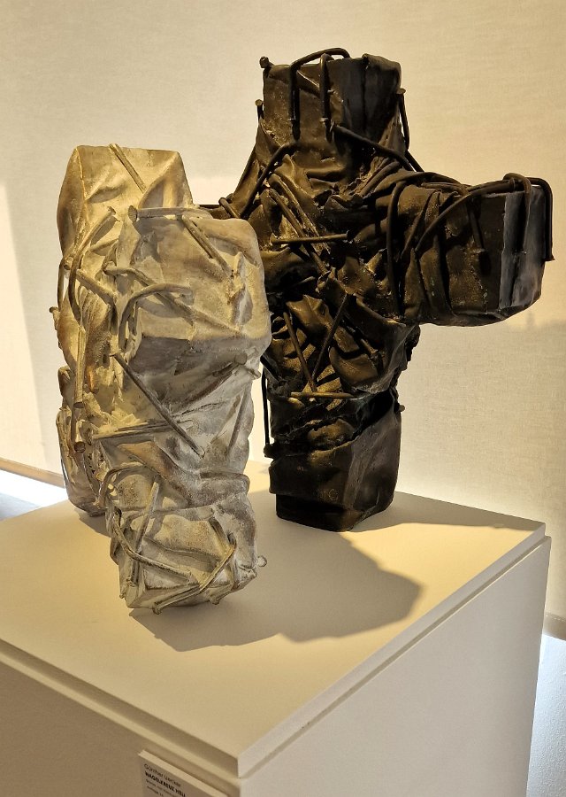 Günther Uecker, Nagelkreuz hell und dunkel, Bronze