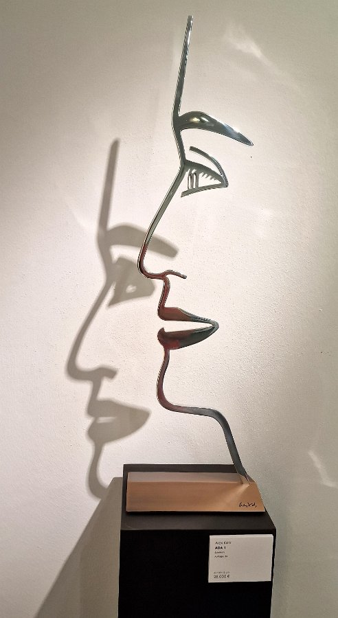 Drei Gesichter und drei Oberkörper verschmelzen zu einem einzigen Körper.
