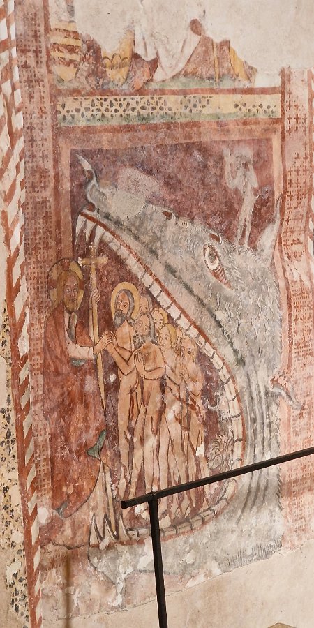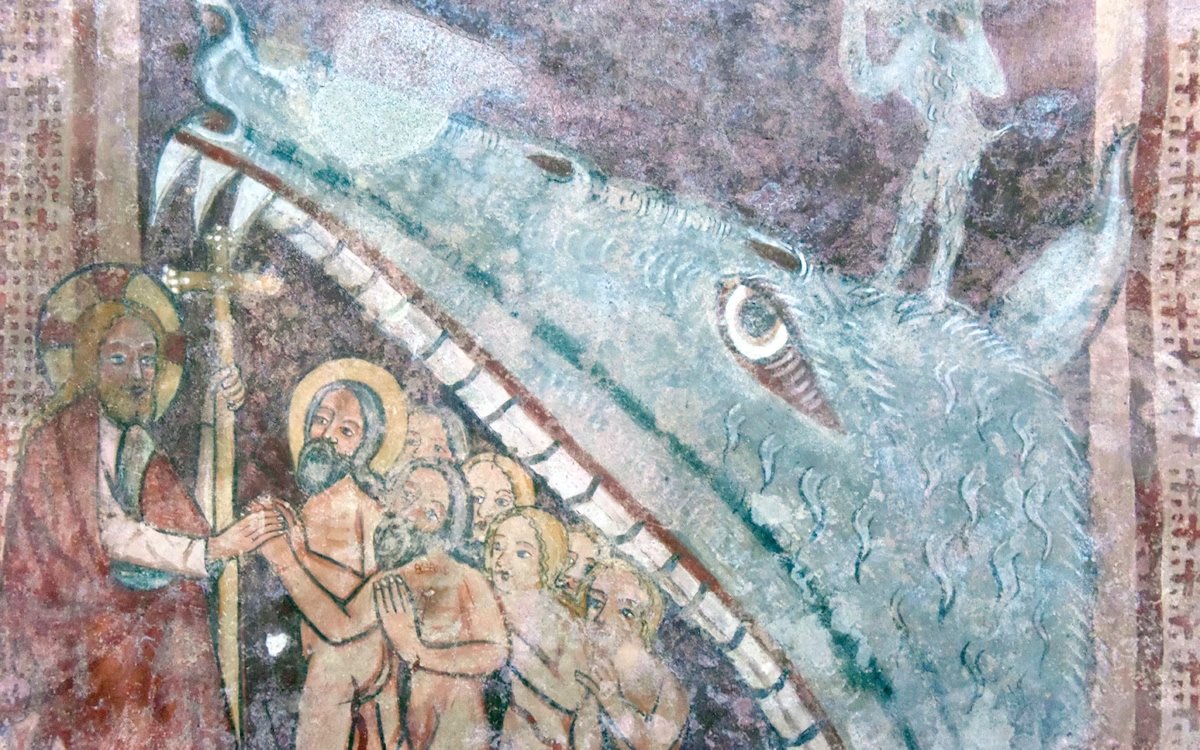Jesus öffnet mit seinem Kreuzstab den Schlund des Ungeheuers, auf dessen Kopf der Teufel selbst steht. Foto: Ruth Bourgeois (STM)