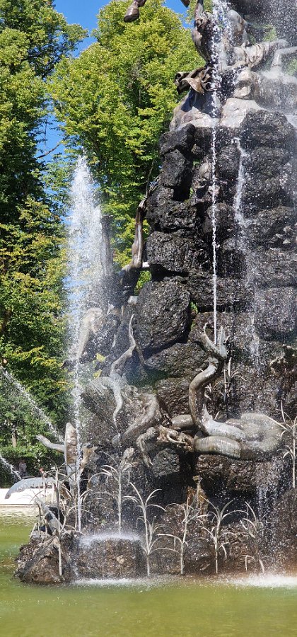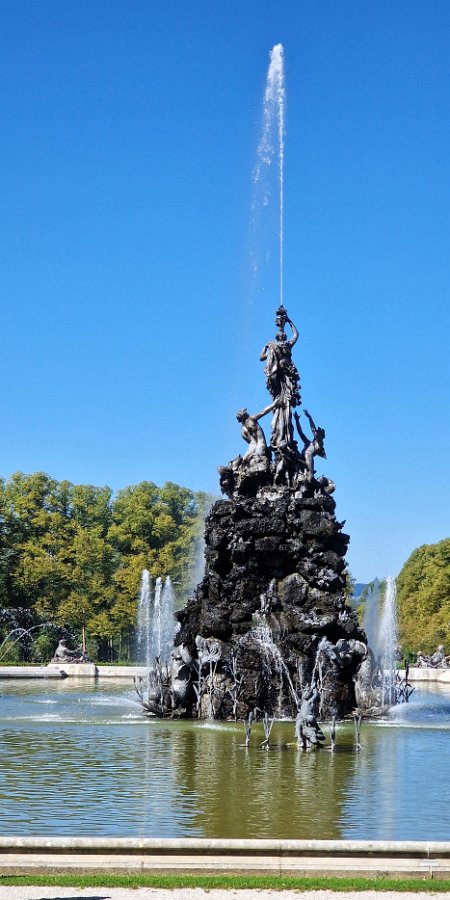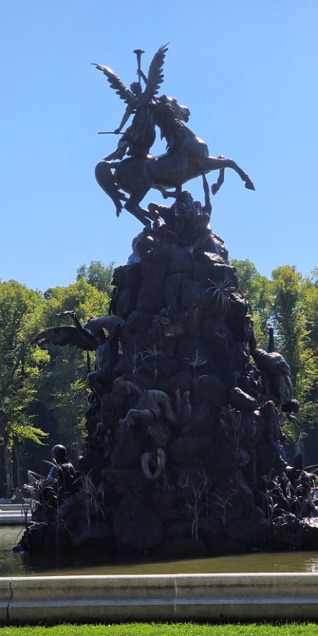 Die zentralen Figurenfelsen mit den Darstellungen des Glücks und des Ruhmes sind Interpretationen der Wasserspiele des Palacio Real von La Granja
