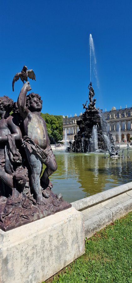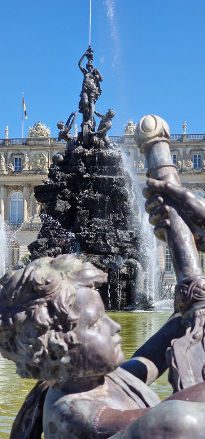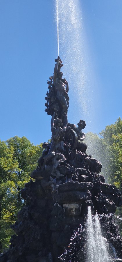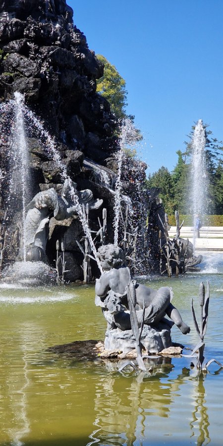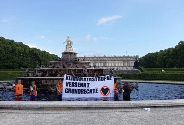 Klimaaktivisten färbten das Wasser des Latona-Brunnens schwarz und versenkten Auszüge aus dem Grundgesetz. Das gefärbte Wasser wurde von einer Spezialfirma abgelassen und entsorgt.