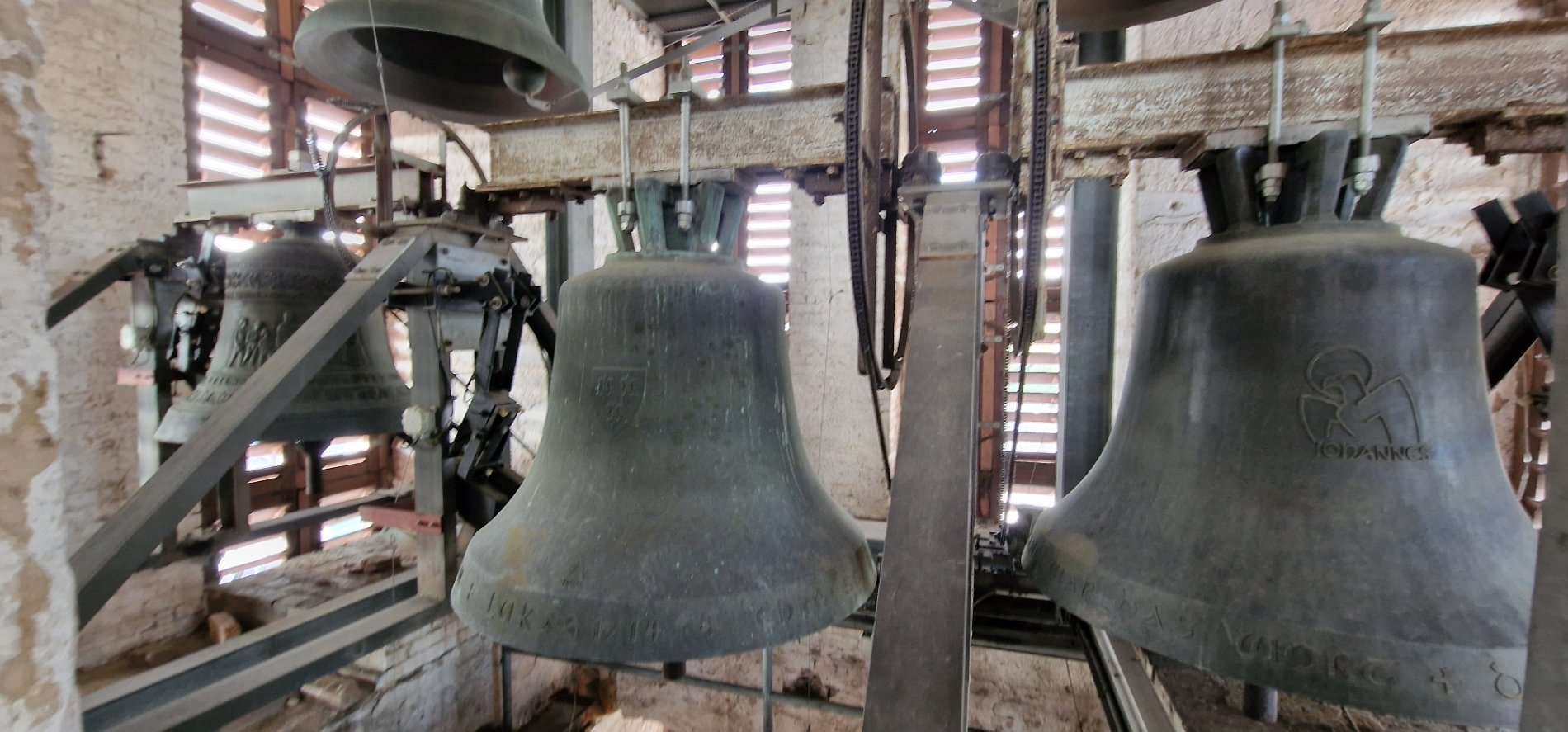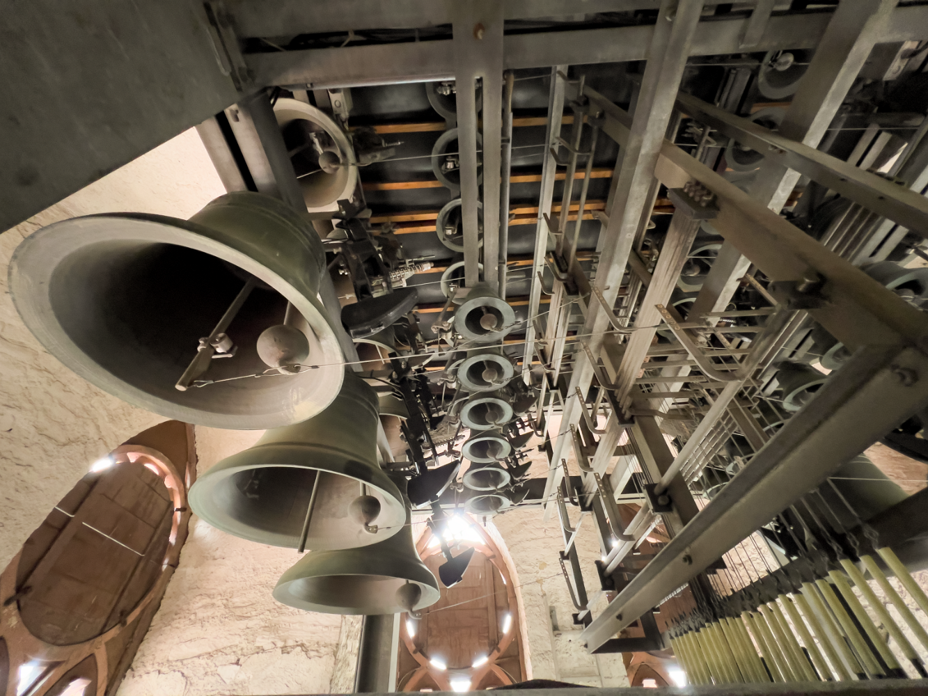 Es umfasst 49 Bronzeglocken mit einem Tonumfang von c1 (= 2.200 kg) bis d5 (= 13 kg). Vier der vorhandenen Läuteglocken sind in das Glockenspiel integriert.