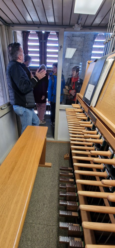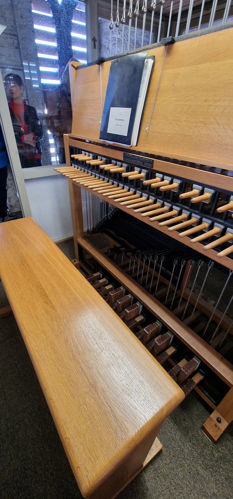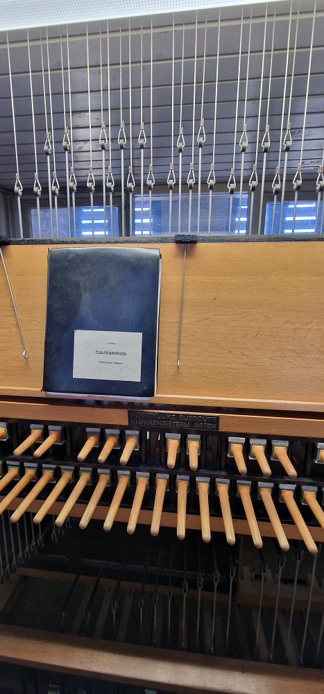 Das Instrument ist von Hand spielbar durch eine mechanische Stockklaviatur im Hauptturm in 55 m Höhe.